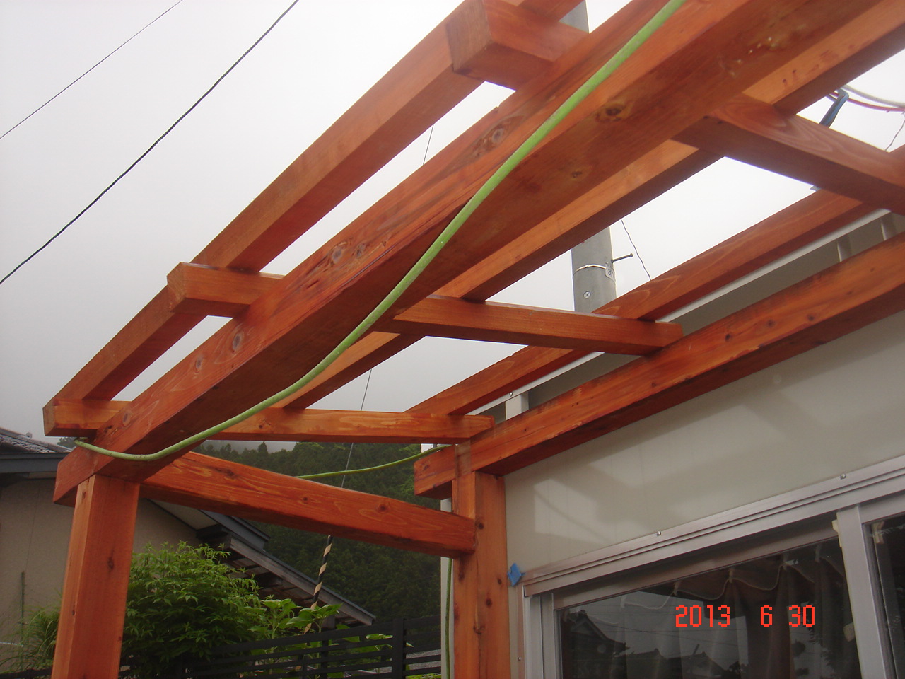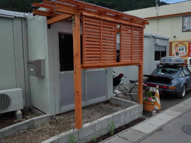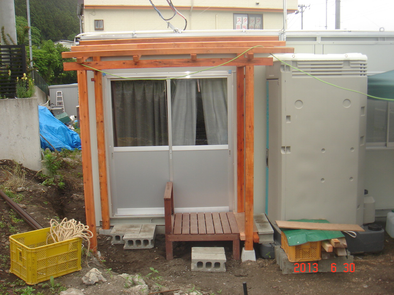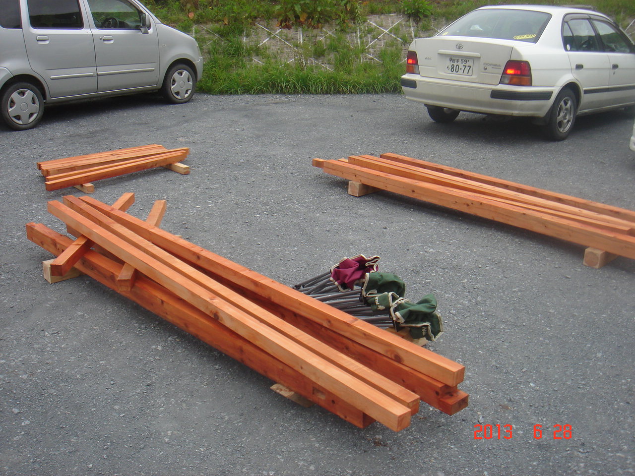 @作業室と物置間の屋根 A昨年盛岡から持ってきた木材の整理と収納小屋の設置