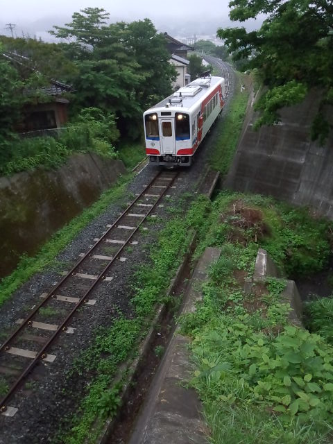 翌日早朝三陸鉄道の列車が見える位置に気づく