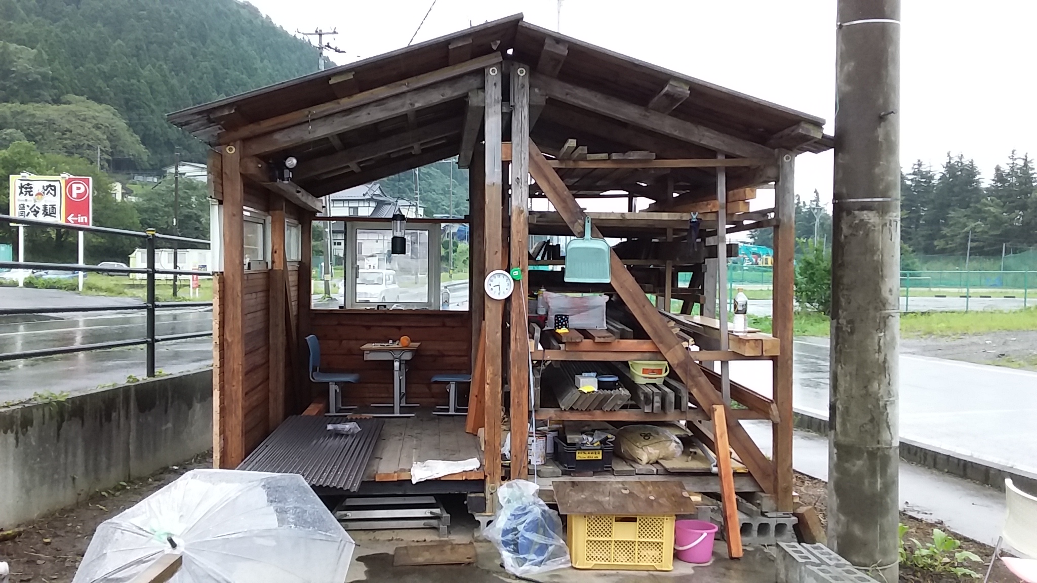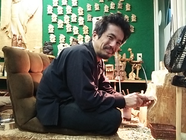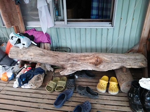 ★9/20 ライダーハウス、蜂の宿 11年前に丸ノミで表面を削った腰掛が健在