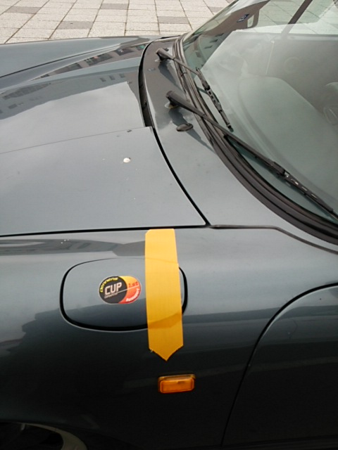 足寄でガス補給しようと、ワイヤーがはずれ、蓋をガムテで帰宅するまでこの状態、