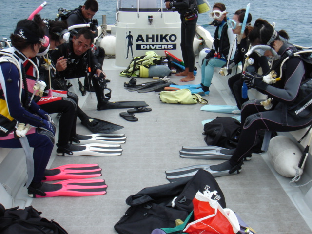 スキューバーの人達は海の中、私は船の周囲を