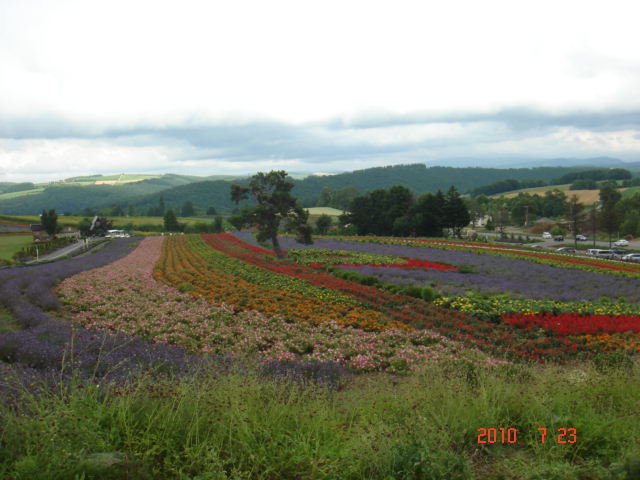 美瑛のラベンダー畑で、異国人の家族と、この場所で