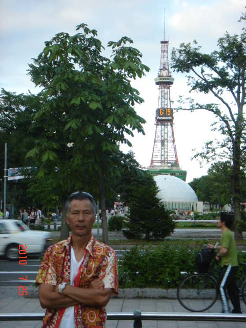 札幌大通テレビ塔をバックに、